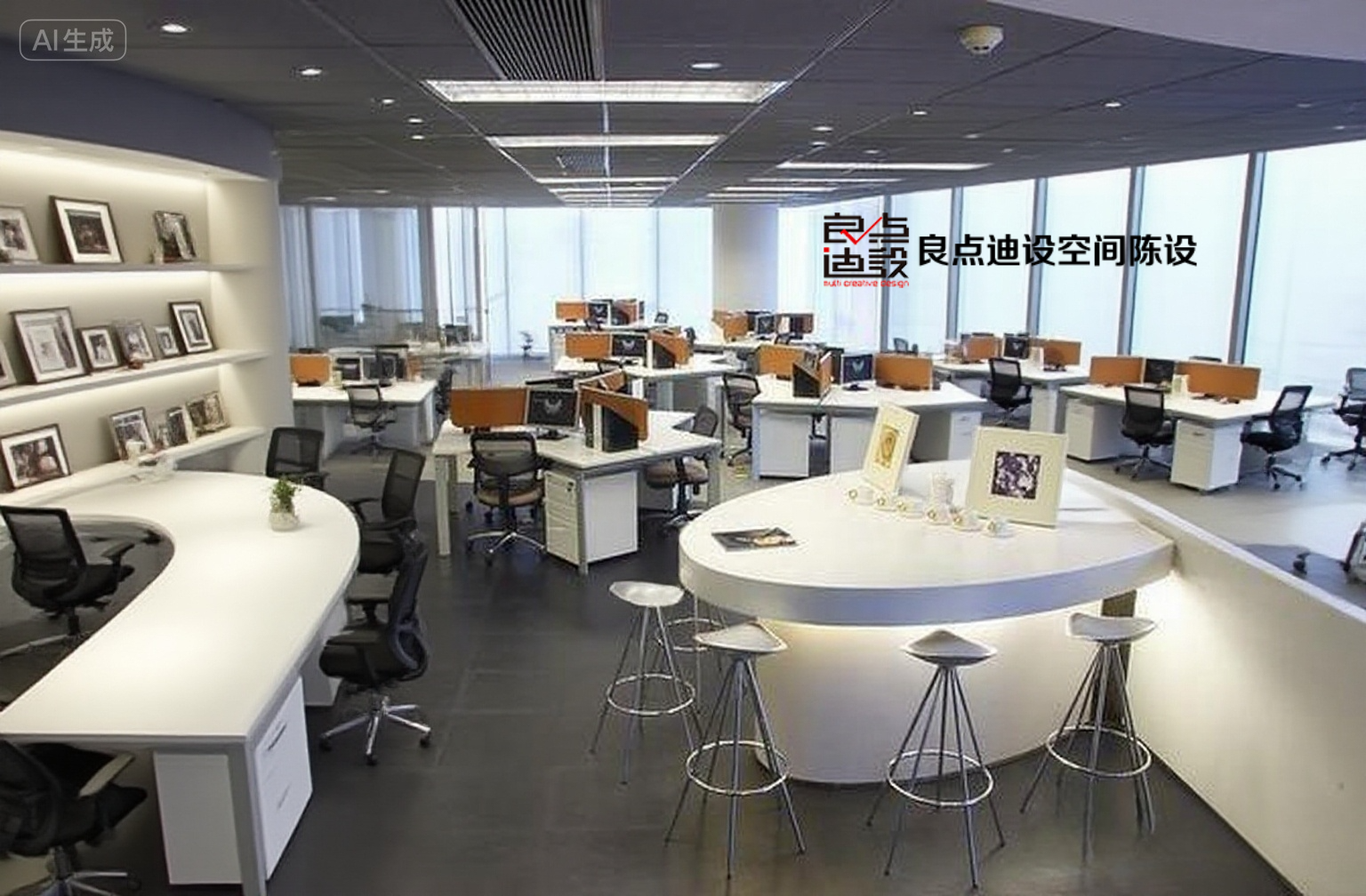 還有玻璃隔斷這招,把會議室和開放區(qū)隔開——