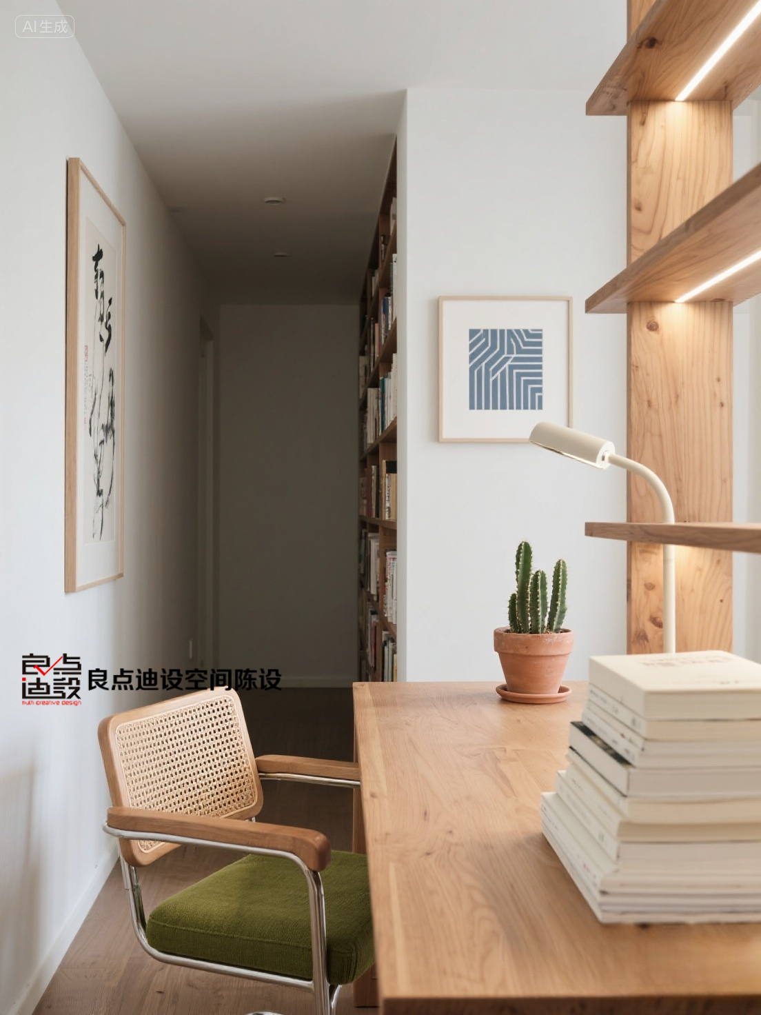 屋主家采光非常好,兩面都是窗,于是我們保留了書(shū)桌的窗戶封閉了朝西面的玻璃,把窗戶做成圓形并且內(nèi)嵌了日夜簾,造型上呼應(yīng)了可愛(ài)的弧形元素,同時(shí)也讓家里光線相對(duì)更集中。學(xué)習(xí)寫字的地方亮,睡覺(jué)休息的地方更靈活調(diào)整光線強(qiáng)弱。
