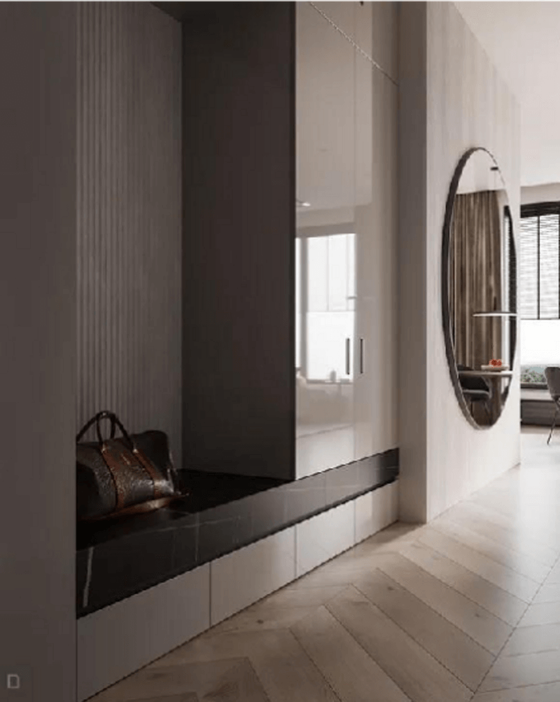 玄關(guān)處的裝修要集美觀度與實用度為一體,鞋柜做到頂設計,***大程度地滿足鞋子收納需求,鞋柜底部留空,方便日常換鞋取鞋,玄關(guān)處采光度較弱,在鞋柜底部和留空處設計好燈帶,增加玄關(guān)處的采光照明。