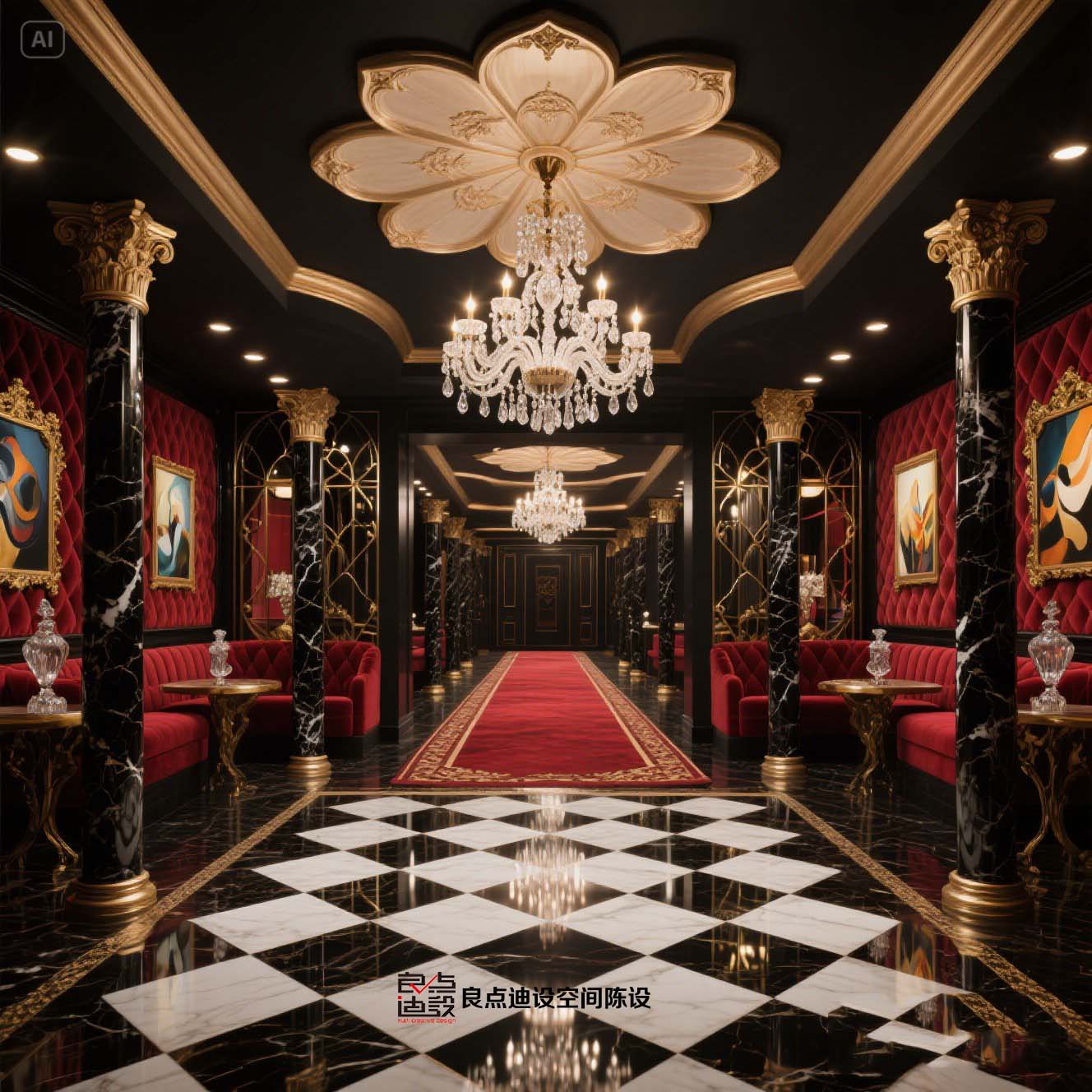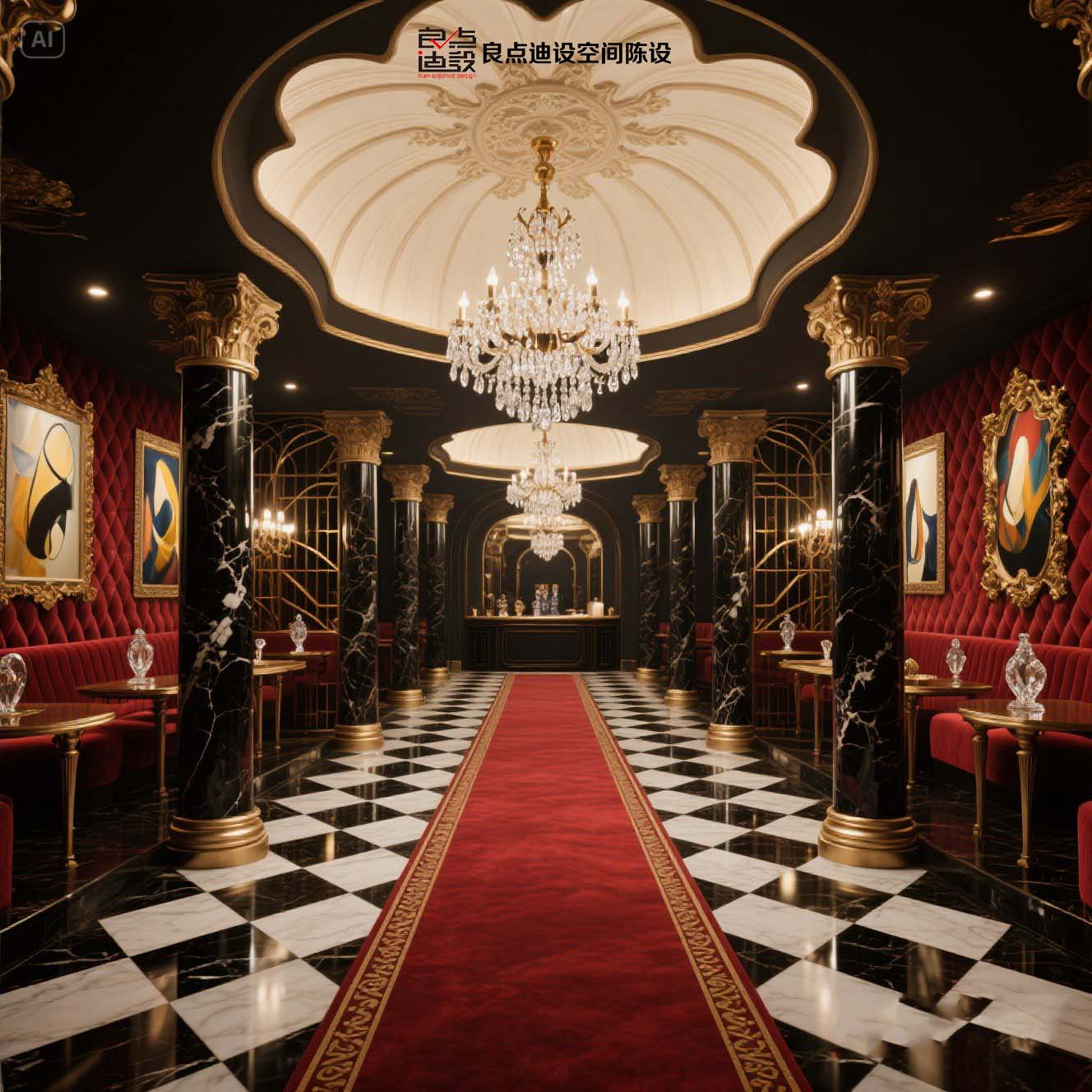 酒吧軟裝教科書!黑金穹頂+紅絲絨沙發(fā)裝修軟裝設(shè)計直接封神