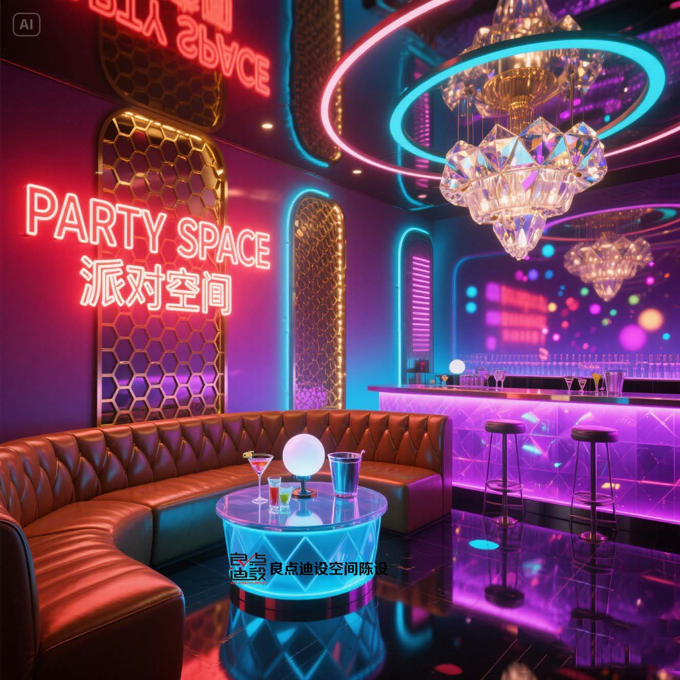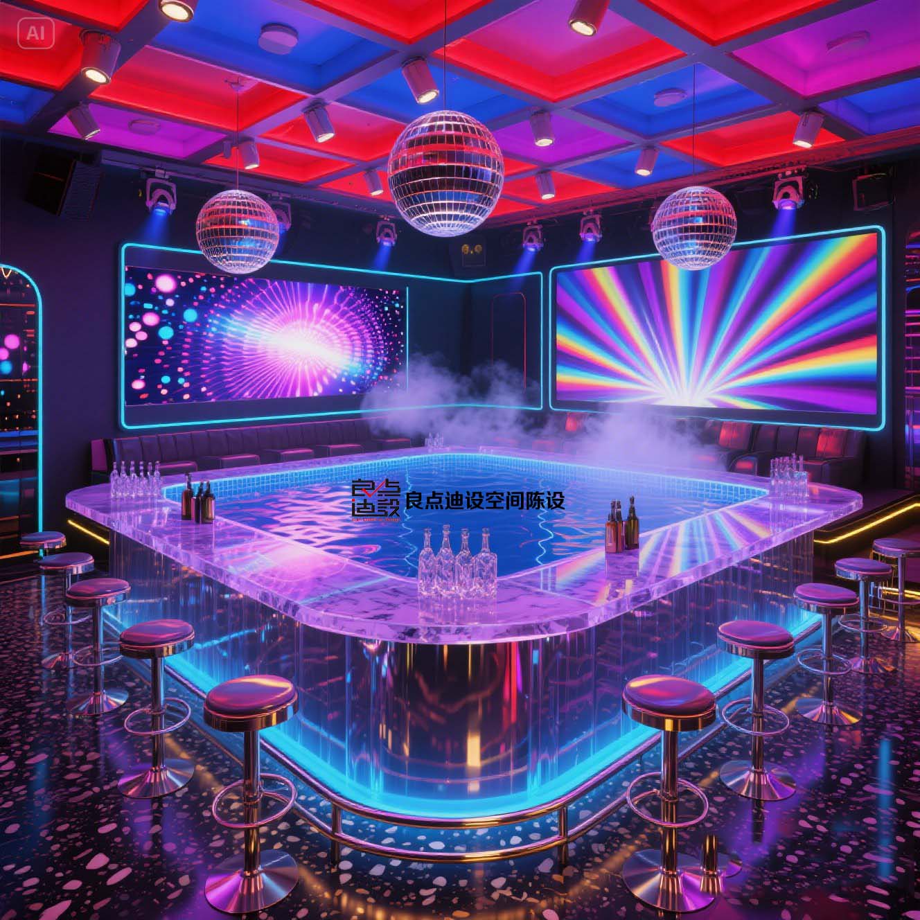 夜店酒吧裝修軟裝設(shè)計!藍色海洋遇上賽博霓虹