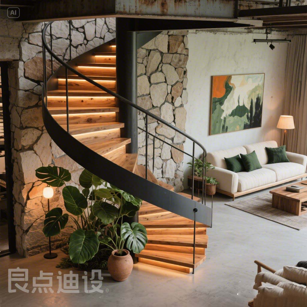 民宿軟裝設(shè)計(jì)氛圍感天花板被我找到了!螺旋樓梯+暖光石墻原地封神