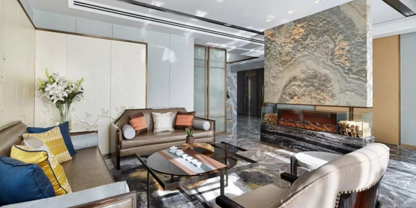 340平新中式樣板間設(shè)計(jì),門廳玄關(guān)拱形門外觀圓潤有致,內(nèi)里方正獨(dú)具東方神韻。會(huì)客廳山水背景墻,加上靈動(dòng)的花枝浮現(xiàn)在皮質(zhì)背景屏上,讓圍合而坐的貴賓感受到人文與自然的詩意。視覺隨著...
