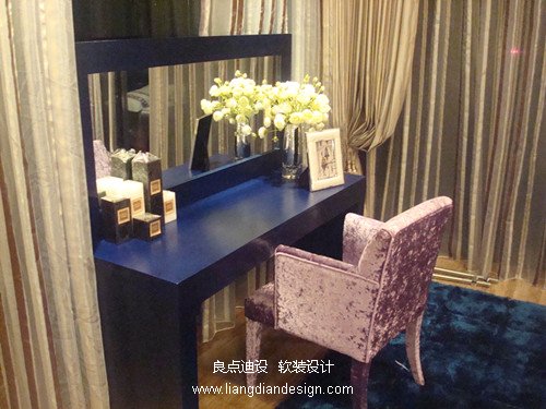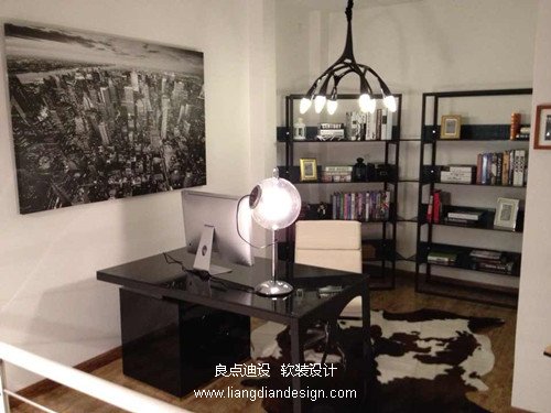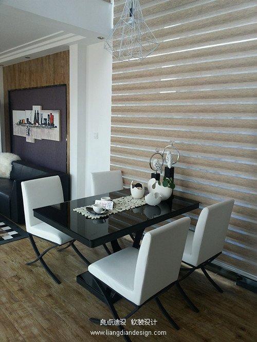香城壹號LOFT本身是一個挑高空間,樓上樓下雙層生活空間,大的落地窗納入明媚陽光,樓下起居室與餐廳連接一體,舒適自然,給居住者提供方便舒適的使用環(huán)境,在這樣的空間中我們運用大膽時尚的設計風格,餐廳區(qū)域是挑高的空間,窗簾形式也采用簡潔的彩虹卷簾百葉的形式。抽象化的吊燈在空間給人帶來隨意自然的氛圍。現(xiàn)代感皮面沙發(fā)和漸變拼花皮地毯都給人帶來時尚的氣息,二樓樓梯間的照片墻有歡迎客人與展示主人愛好與生活方式的作用,一個小桌配一個復古的皮沙發(fā),不論是暖暖的下午還是深夜都是一個品茶看書的好地方,貴族藍的床品和化妝臺搭配煙灰色紗幔,為臥室營造出典雅浪漫的氣息,LOFT風格創(chuàng)意裝飾就這樣被打造出來。