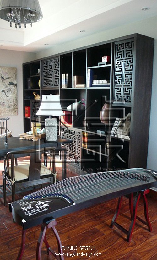 家具多以深色為主,黑、白、灰色為基調(diào),加入皇家住宅的紅、黃、藍、綠等作為局部色彩。裝飾材料采用瓷器、陶藝、字畫等